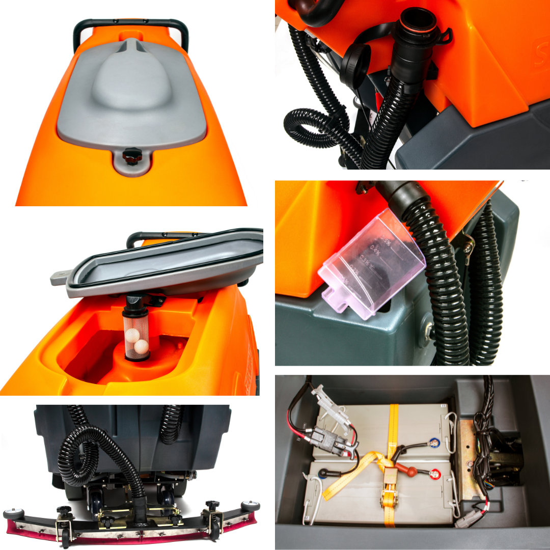 The high-capacity battery ensures 4 hours extended run time, allowing the self-propelled floor scrubber machine to cover more square footage without interruption. With its powerful brush motor and reliable squeegee system, the RT120 lifts dirt, grime, and debris with precision.